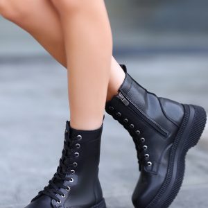 Jeoni Siyah Cilt Topuklu Çizme