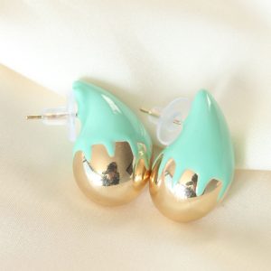 Minimal Turkuaz Mineli Çift Renk Damla Küpe