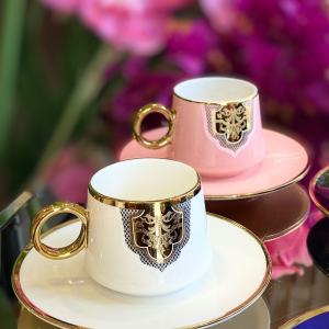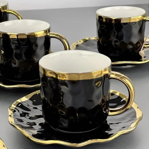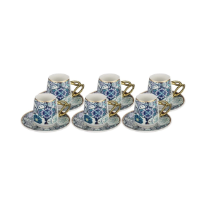 6 Kişilik Renkli Porselen Lokumluklu Kahve Fincan Takımı Royaleks-3303