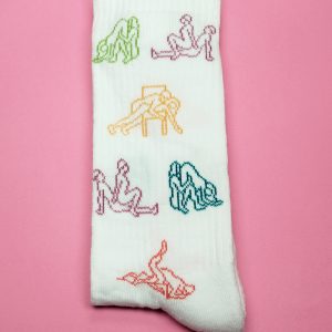 Beyaz Uzun Kolej Çorabı Erotik Pozisyon Desenli Kışlık Kalın Çorap Fantezi Çift Çorabı 2 Adet