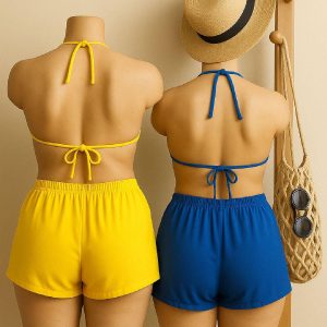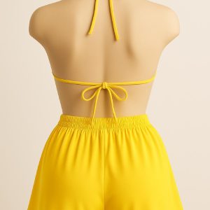 Kadın Sarı Şortlu Belden ve Boyundan Bağlamalı Bikini Takımı – Modern, Konforlu ve Günlük Kombinlere Uygun