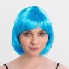 Turkuaz Açık Mavi Renk Düz Kesim Kısa Küt Parti Peruku – Cesur ve Şık Bir Seçim!